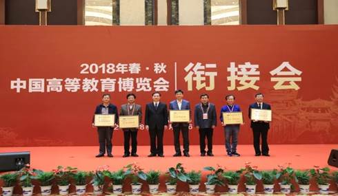 衔接会上,中国高教学会领导为本届高博会做出突出贡献的单位、个人颁发奖牌。湖北省高等学校实验室工作研究会、武汉大学、武汉理工大学、华中科技大学、华中师范大学、中国地质大学(武汉)、中南财经政法大学、华中农业大学、中南民族大学、江汉大学、武汉船舶职业技术学院、海军工程大学、湖北大学、武汉科技大学、湖北工业大学等15个单位荣获突出贡献奖。三峡大学、长江大学、武汉工程大学、武汉工程科技学院、武汉职业技术学院、武汉纺织大学、武汉轻工大学、湖北中医药大学、湖北第二师范学院、湖北师范大学、武汉商学院、国防科技大学信息通信学院等12个单位荣获优秀组织奖。大会还向志愿者代表颁发了优秀志愿者证书。