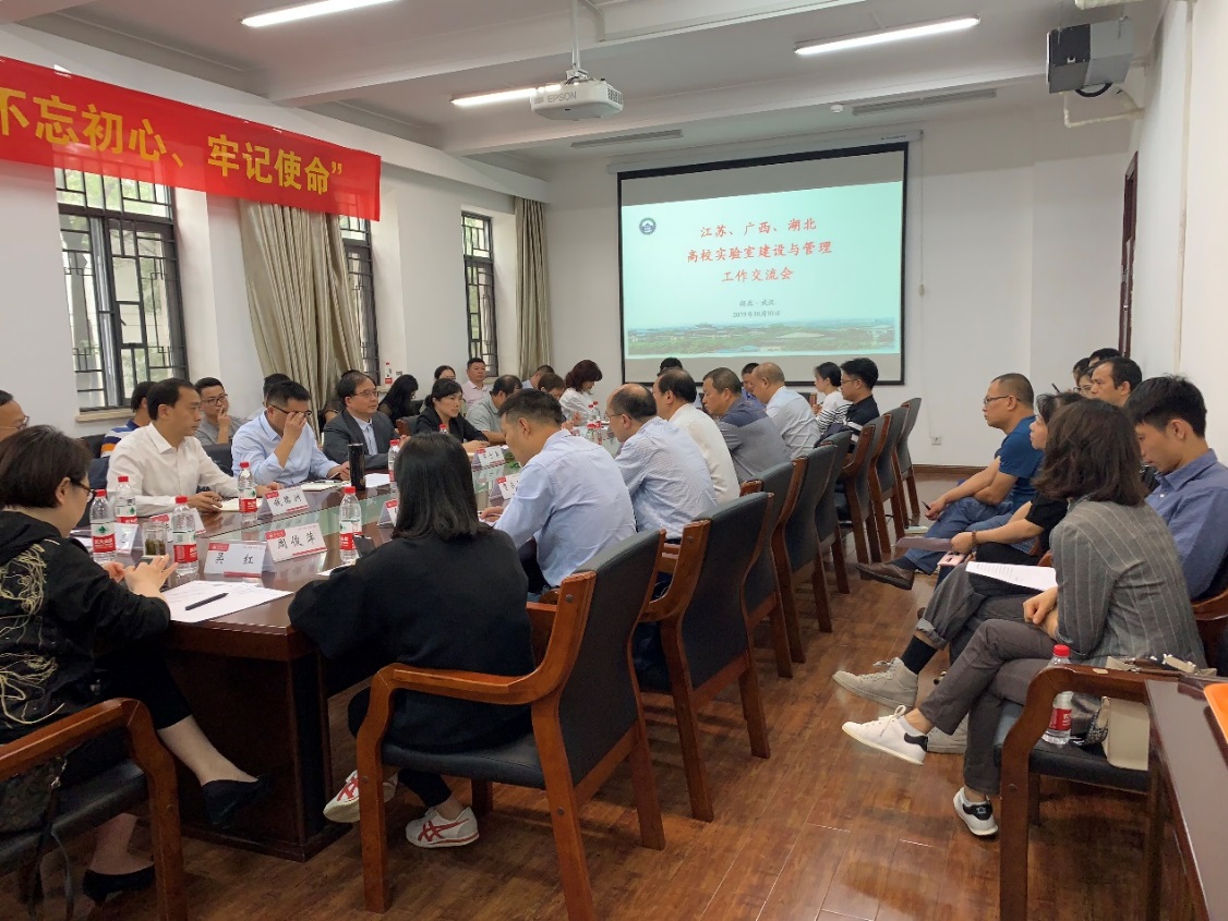 随后湖北省参会高校分别介绍了各自学校在实验室建设与管理、大型仪器设备开放共享、实验室安全管理等方面的工作经验,与会双方就实验室工作中存在的问题进行了充分交流。交流过程中,江苏广西高校与会人员高度评价了本次工作交流会的意义和湖北高校的宝贵工作经验,双方并就实验室绩效考核评估体系建设、整合各类实验室资源、设备购置计划及论证科学合理性、如何满足学校人才建设需求、实验室安全追责机制建立、加快实验教学改革创新等热点问题进行了深入交流和探讨。