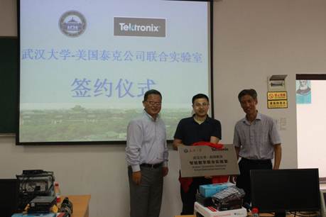 2017年6月14日下午2:30,由武汉大学电子信息学院、泰克科技(中国)有限公司以及湖北鑫合欣科技有限公司联合组织的湖北高校电工电子实验教学交流会暨“武汉大学-美国泰克智能教学联合实验室”挂牌仪式在武汉大学电子信息学院教学实验中心顺利举行。来自华中科技大学、华中师范大学、中国地质大学、海军工程大学等省内10多个高校的30余位教师参加了交流会,武汉大学实验室与设备管理处处长雷敬炎、泰克科技(中国)有限公司销售总监宋磊、武汉大学电子信息学院院长李德识、副院长贺赛先等出席会议。会议由武汉大学电子信息学院教学实验中心主任陈小桥主持。
