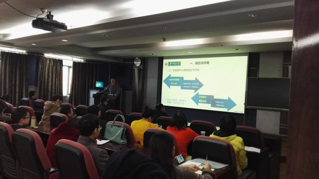 培训会特邀物理学院副院长黄光明教授作了题为“实验技术人员自身发展”的专题报告。报告围绕实验技术队伍在高校中的地位作用、岗位职责、发展与提升三个方面对我校实验技术人员进行了培训指导。培训内容丰富,针对性强。他在培训中指出高校实验技术人员应具备扎实的专业基知识;积极开展实验教学指导,实验方法改进,实验装备的研制、开发及实验仪器设备的维护维修等工作;能理论联系实际,熟练掌握实验操作技术;不断提高科学化、现代化管理水平;认真研究实验室管理的新情况、新措施、新模式,在实验教学、实验技术研究与开发、实验室建设与管理等方面不断提高自己的综合素质、知识水平和工作能力。