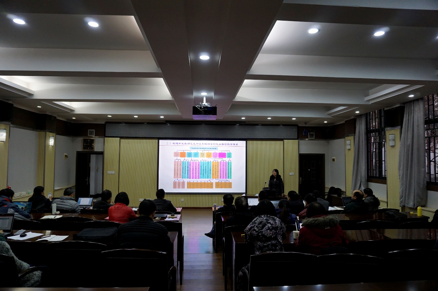 12月14日至15日,华中师范大学实验教学示范中心评估专家评审会暨实验教学示范中心建设交流会在行政楼二楼会议室举行,各级实验教学示范中心主任、副主任、部分实验教学人员,准备新建实验教学示范中心的学院相关领导和老师,实验室与设备管理处领导和相关岗位人员参加了会议。会议历时一天半,11个省级及以上实验教学示范中心分别汇报了本中心近5年来在人才培养工作和成效、教学改革研究、实验教学队伍建设、经费投入与条件保障、信息化建设、运行与管理、开放与示范辐射、中心存在的主要问题及未来发展思路等方面的情况。专家组在认真审阅各中心提交的自评报告、听取PPT整体汇报并与汇报人深入交流的基础上,对各示范中心进行了评估,并提出了意见和建议,如进一步凝练课程体系,完善整体性评价;理顺实体实验与虚拟实验关系;加强实验技术队伍建设等。